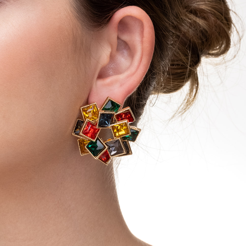Descrição: Um design "bold" e futurista. Este brinco apresenta um formato de meia esfera robusta com fendas horizontais vazadas que revelam a pele, criando um contraste moderno.