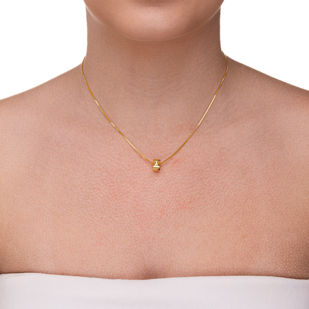 Descrição Curta: A união perfeita entre a modernidade do design geométrico e a delicadeza da joalheria clássica. Este colar apresenta um pingente estilo berloque em formato de "rodinha", com acabamento liso e alto polimento espelhado. Por ser um modelo passante, o pingente desliza suavemente pela corrente, criando um movimento fluido e um visual minimalista sofisticado, ideal para compor "mixes" de colares ou ser usado como peça única de destaque.