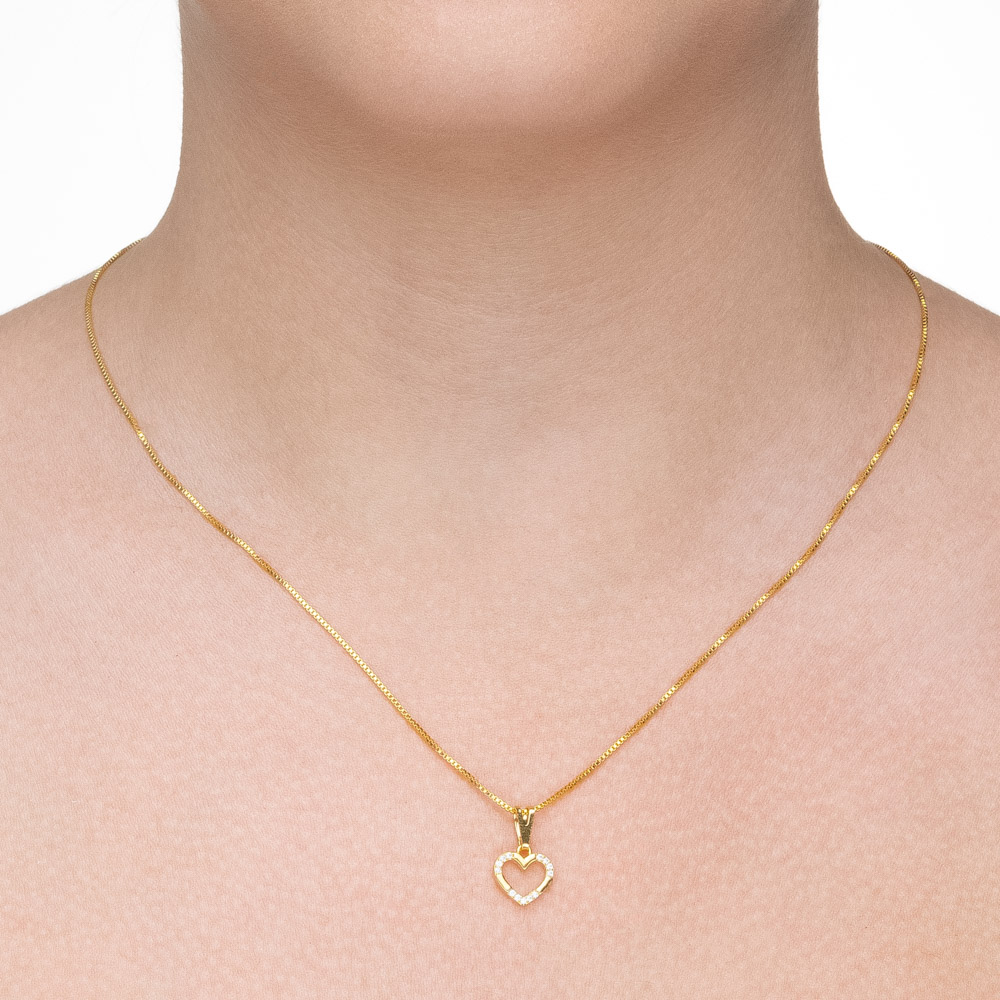 Descrição Curta: O clássico do romantismo com um toque de brilho extra. Este colar apresenta um delicado pingente em formato de coração vazado, com a metade da sua silhueta cravejada em zircônias incolores. Uma peça atemporal e versátil, perfeita para expressar afeto ou compor um visual feminino e iluminado no dia a dia.