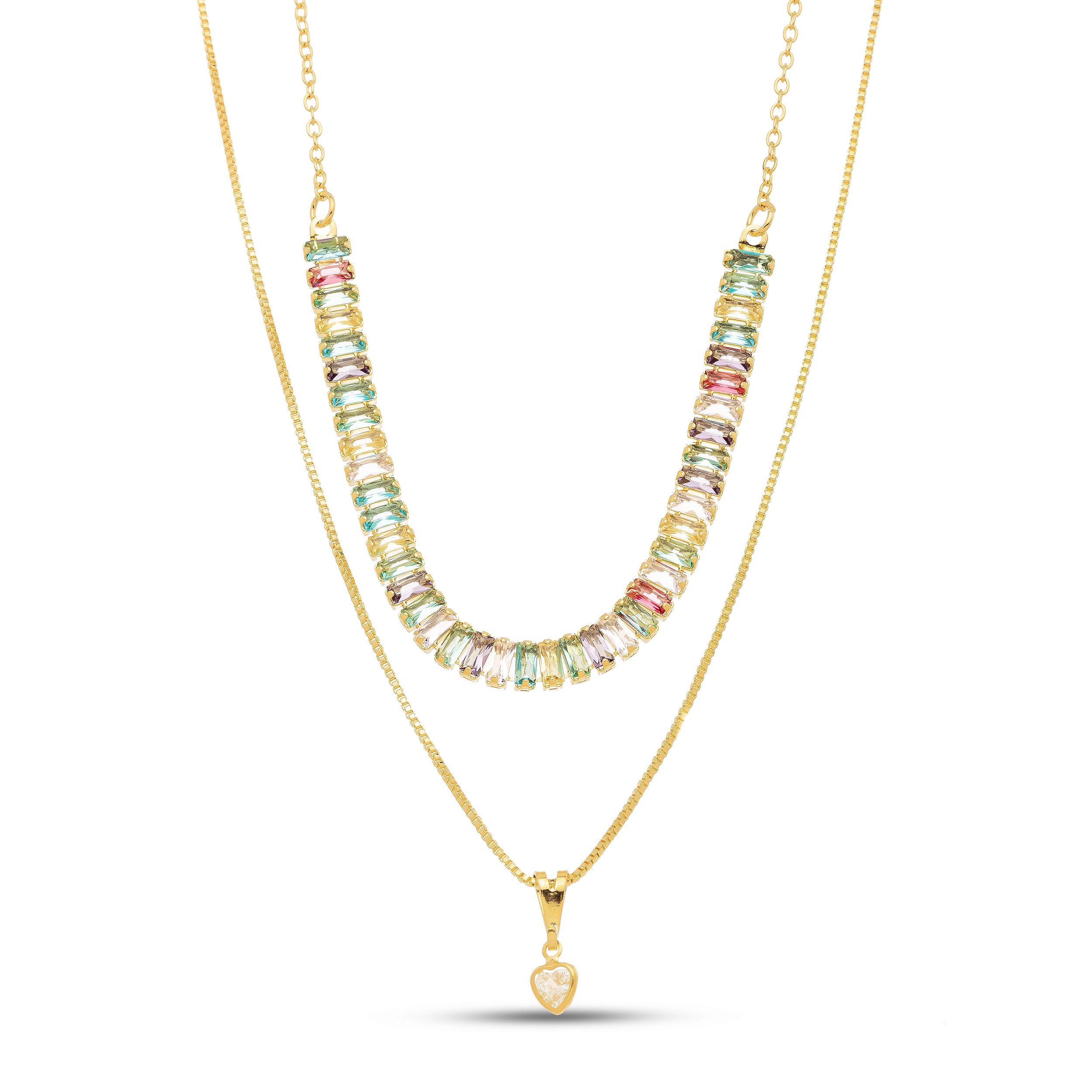 Colar duplo zircônia baguete em banho de ouro CL 00056