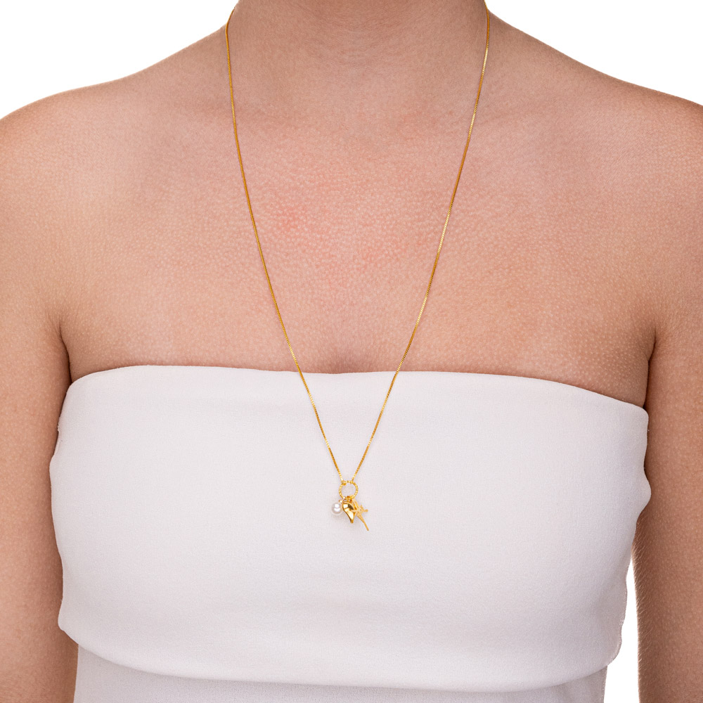 Descrição Curta: Um amuleto para quem ama. Este colar patuá combina pingentes de FÉ com um coração liso e uma delicada pérola sintética, design clássico.