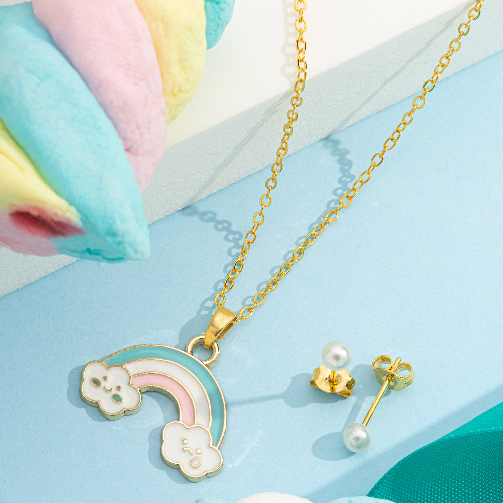 Conjunto infantil arco Íris banhado a ouro CJI 00031