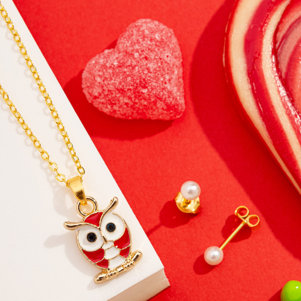 Conjunto Infantil coruja vermelha em banho de ouro CJI 00040