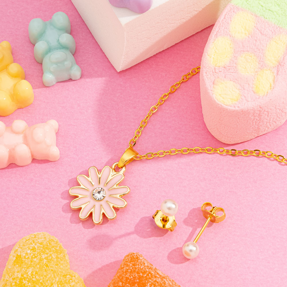 Conjunto Infantil flor banhado a ouro CJI 00042