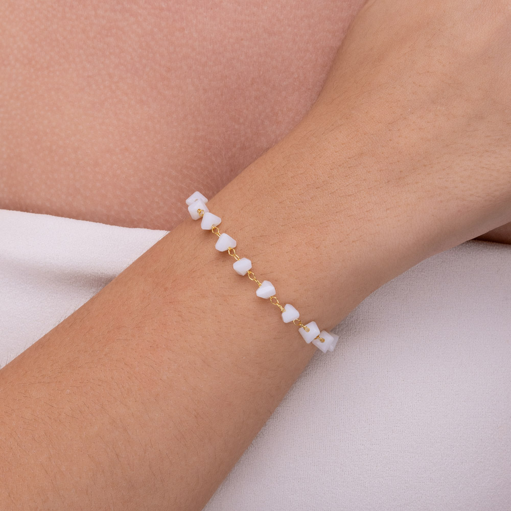 Adicione um toque de cor e delicadeza ao seu visual com esta encantadora pulseira de corrente de cristais preto e leitoso.