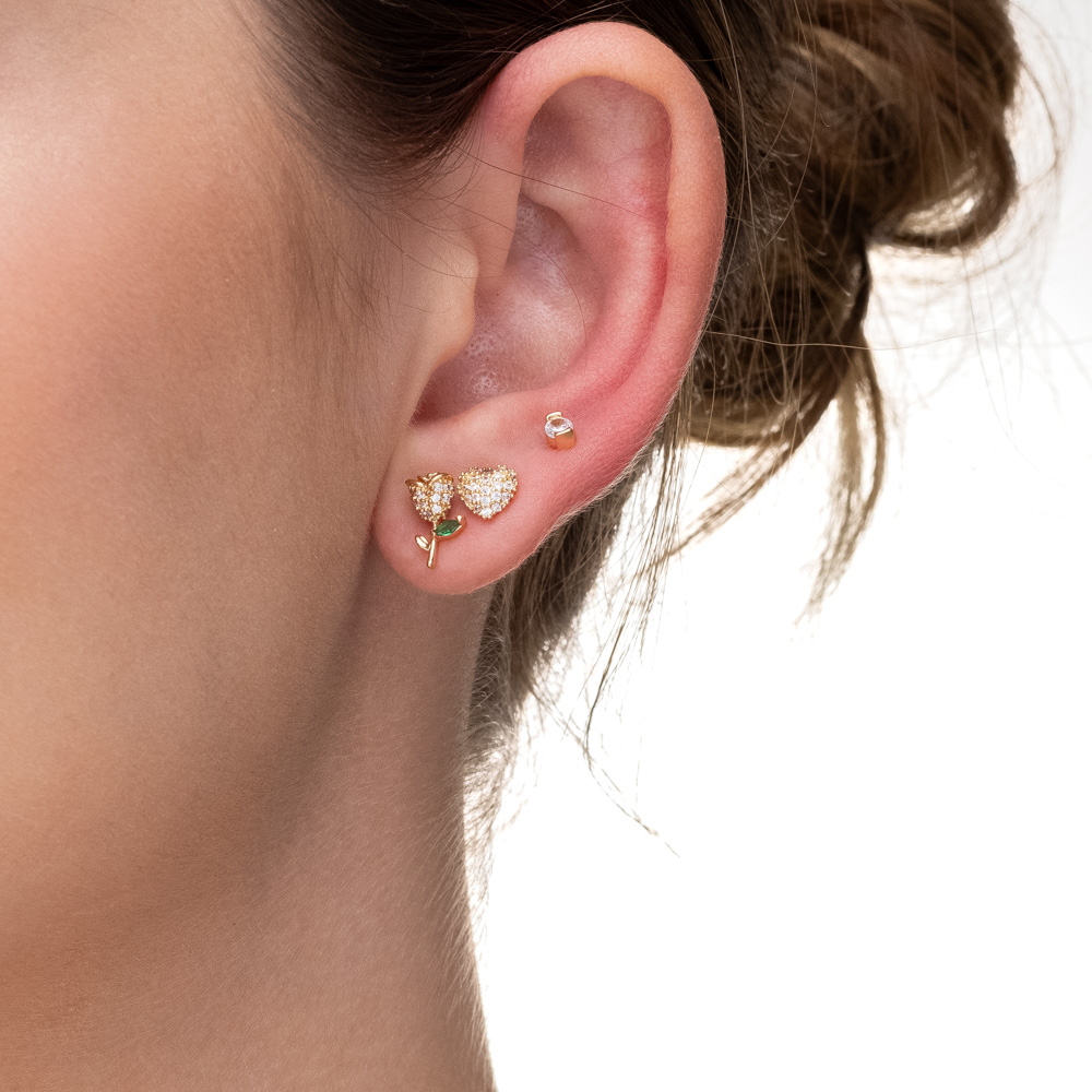 Descrição Curta: Delicadeza e romantismo em uma composição encantadora. Este trio exclusivo apresenta um par de brincos em formato de flor detalhadamente cravejado com uma zircônia verde na folha, um par de corações em pavê de zircônias e um par de pontos de luz tradicionais. É a escolha perfeita para um visual feminino e iluminado.