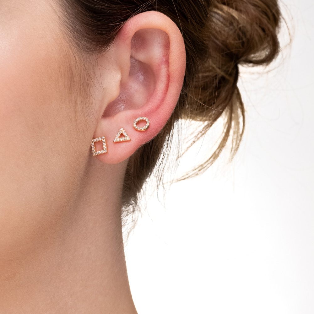 Descrição Curta: Uma composição geométrica que une modernidade e delicadeza em um só combo. Este trio apresenta três pares de brincos com formatos distintos — triângulo, círculo e quadrado — todos com design vazado e inteiramente cravejados com microzircônias incolores. É a escolha ideal para criar um visual dinâmico e iluminado, seja utilizando os três juntos ou alternando os formatos conforme a ocasião.
